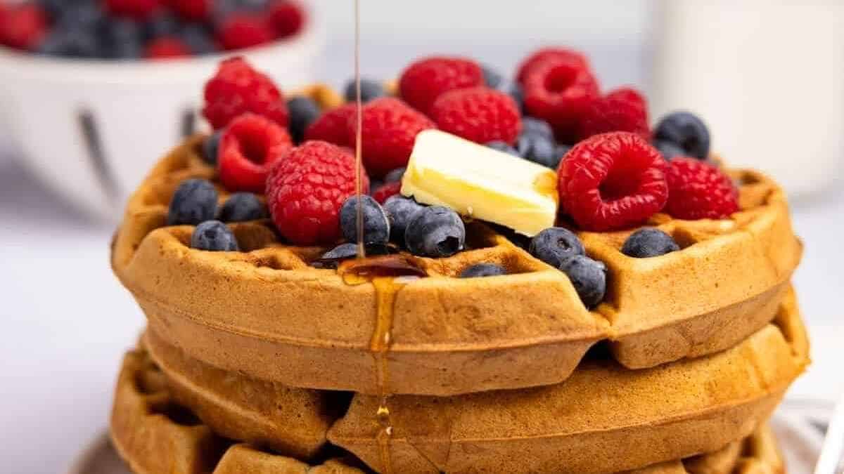 These sourdough discard waffles are a great way to use up sourdough discard. Top with maple syrup and fresh berries for a tasty breakfast.